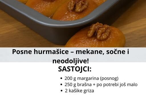 Ako tražite savršeni recept za posne hurmašice koje su mekane, mirisne i dugo ostaju sočne, na pravom ste mestu. Ovaj tradicionalni kolač u posnoj varijanti ne razlikuje se po ukusu od klasičnog – naprotiv, mnogi tvrde da je još lepši!