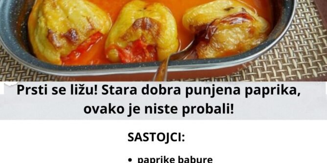 Skloniti sa šporeta i ubaciti to u mleveno meso i rukama izjednačiti ili varjačom i puniti paprike. Zatvarati kriškama paradajza.