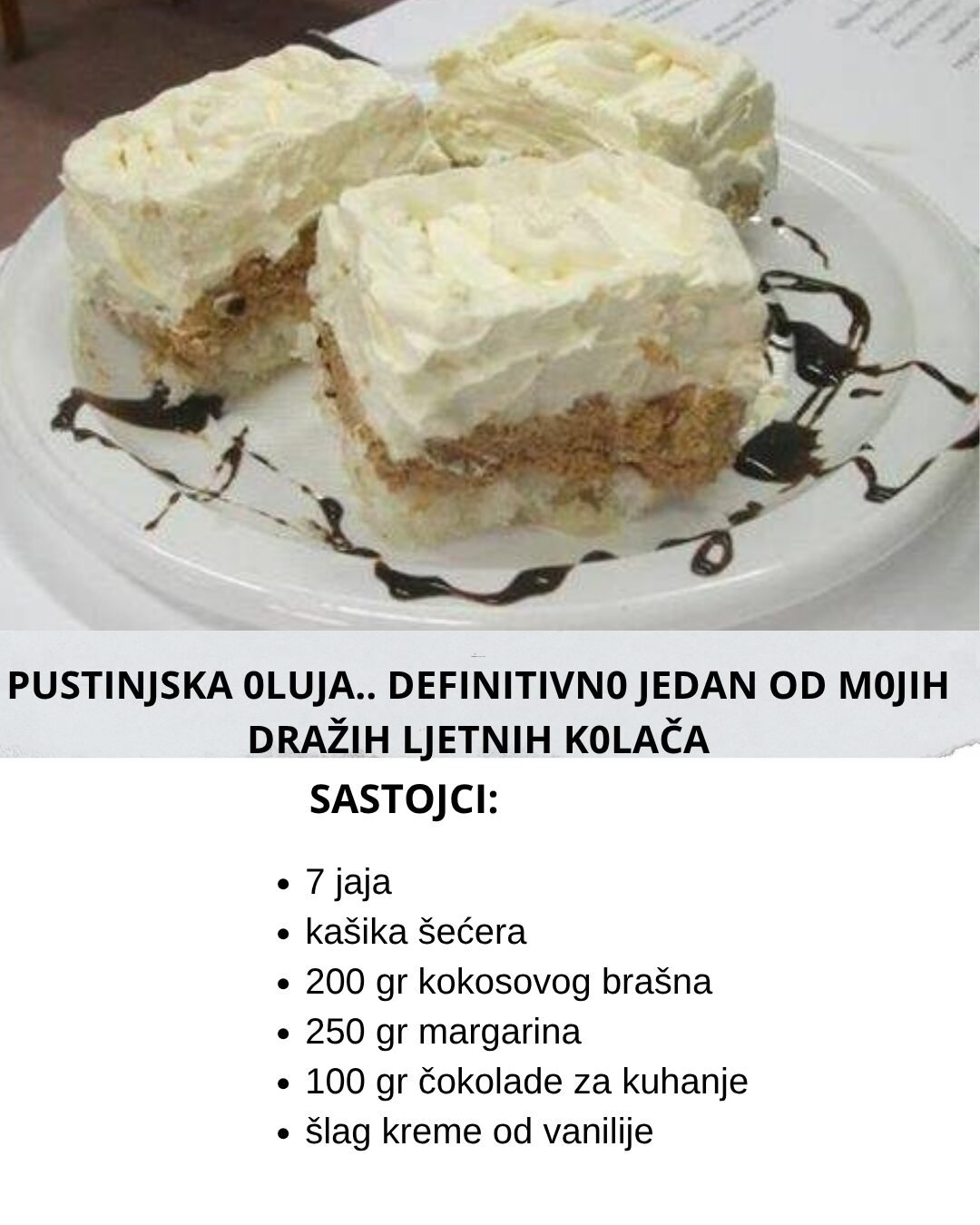Sastojci za koru: 7 belanaca 1 celo jaje 7 kašika šećera 7 kašika brašna 3…