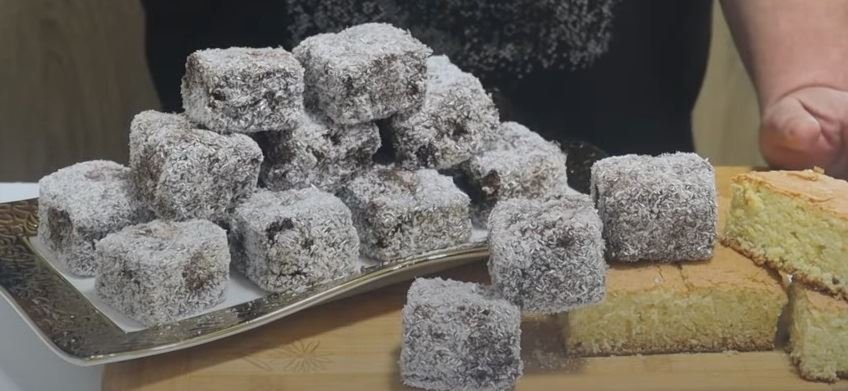 Pustite da sve proključa i da se se lepo sjedini. Isecite biskvit na kocke, veličine koja vama odgovara. Svaku kocku dobro umočite u preliv pa uvaljajte u kokos. Potrebno vam je 150 do 200 gr kokosa.