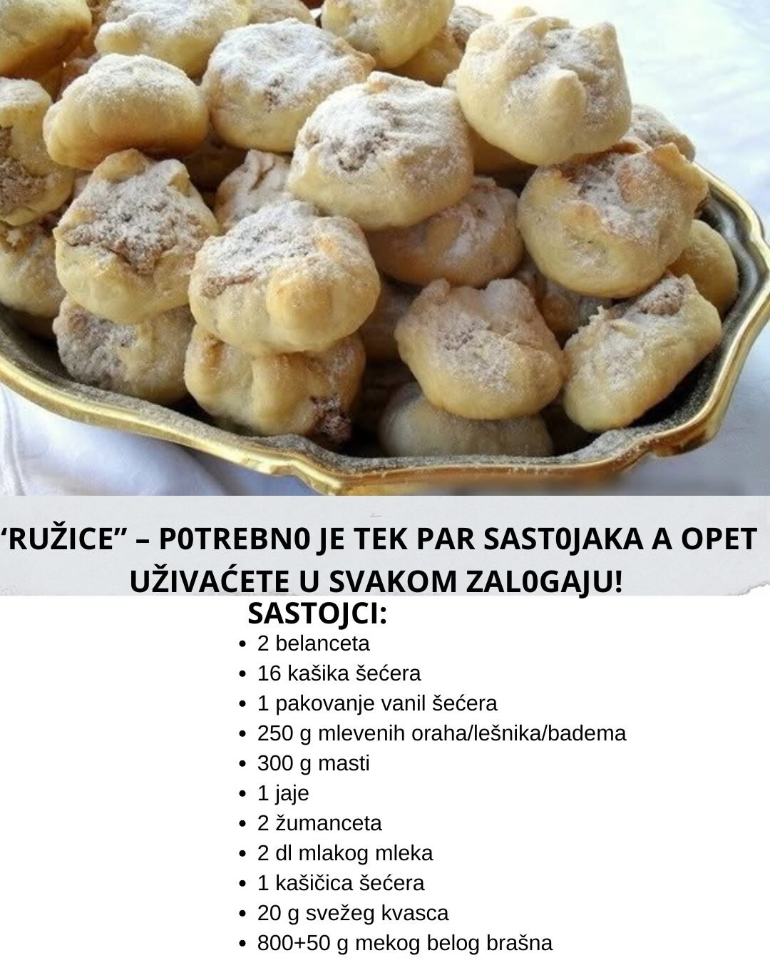 Zašto Ružice – zato što pri pečenju testo naraste a i fil od belanaca tako da fil obavezno bar malo “proviri” iz testa. Ja obično testo ne zatvaram čvrsto, već više onako ovlaš, volim da fil skoro sasvim izadje na površinu, da se ružice sasvim rascvetaju, a vi već po svojoj volji. Kao što sam u uvodu rekla, možete ih jesti dok su još topli, jednostavno su neodoljivi…