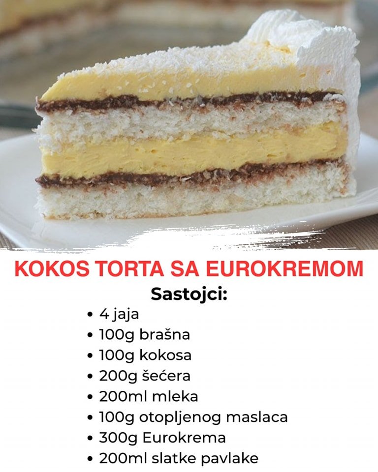 Sastojci za koru: 7 belanaca 1 celo jaje 7 kašika šećera 7 kašika brašna 3…