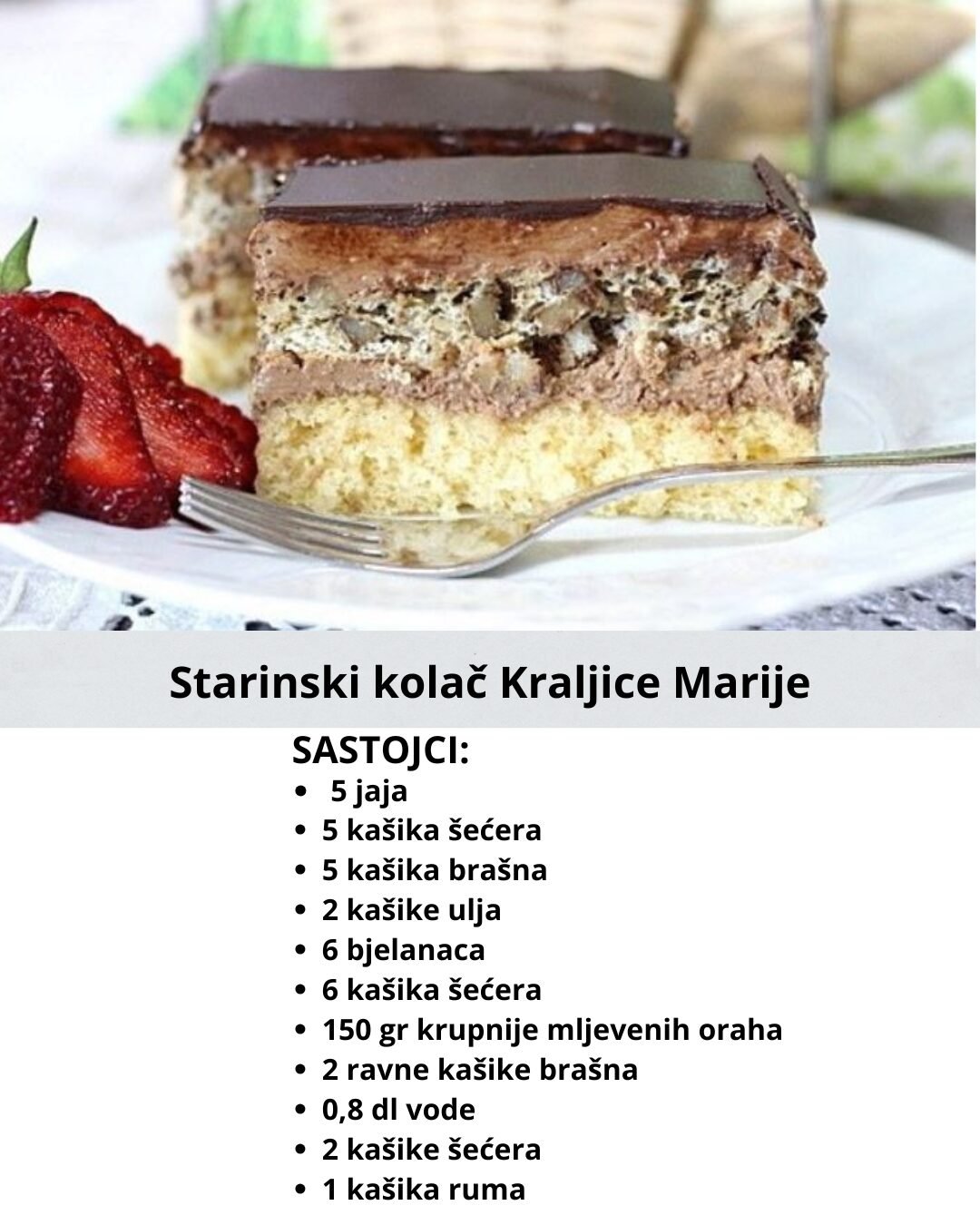 Sastojci za koru: 7 belanaca 1 celo jaje 7 kašika šećera 7 kašika brašna 3…