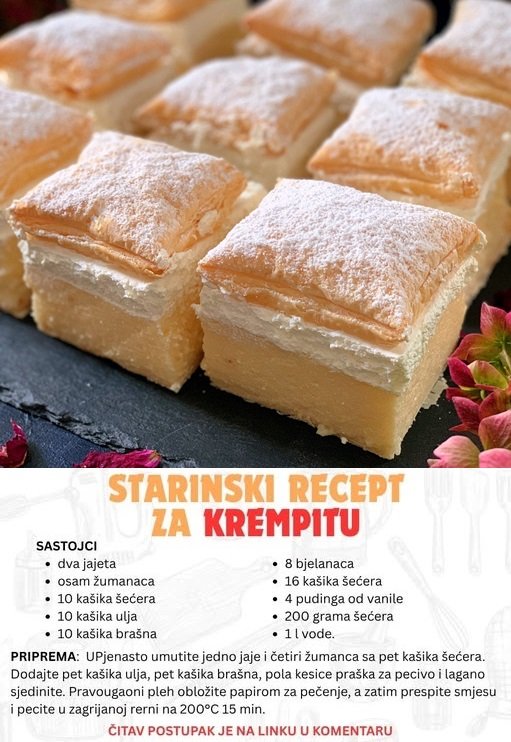 Sastojci za koru: 7 belanaca 1 celo jaje 7 kašika šećera 7 kašika brašna 3…