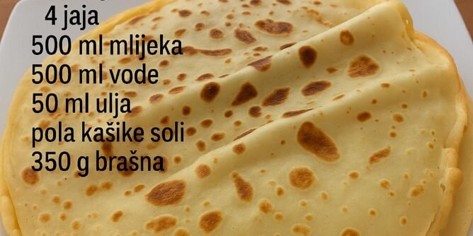 Priprema: U činiju stavite jaja, mleko, vodu, so, ulje, pa dobro promešajte. Malo po malo dodavati brašno uz stalno mešanje.