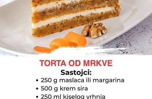 Torta od mrkve možda zvuči neobično onima koji je nikada nisu probali, ali jednom kad zagrizeš – postaješ fan zauvijek. Mekana, sočna i puna mirisa cimeta, orašastih plodova i bogate kreme, ova torta je savršen balans između jednostavnog kolača i fine slastice za posebne prilike.