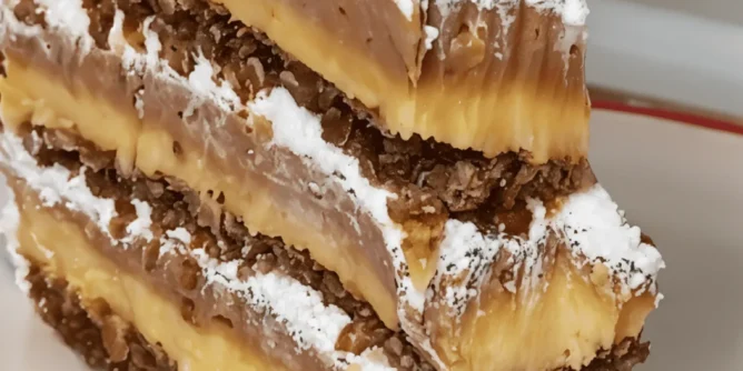 - Pečenje kore: Obložite pleh papirom za pečenje i izlite smesu u pleh. Pečite na 180°C oko 25 minuta, dok kora ne postane zlatno smeđa.
