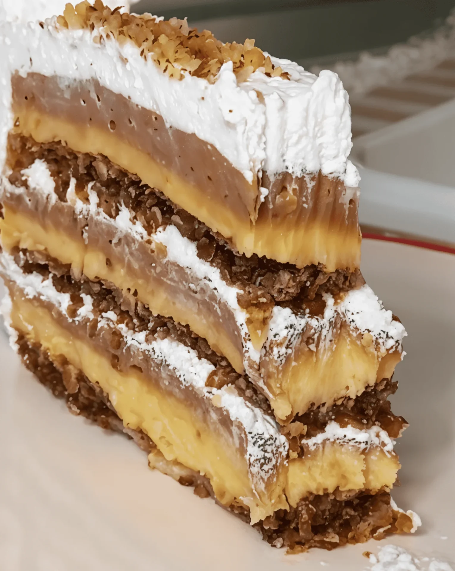 3. Pečenje kore: Obložite pleh papirom za pečenje i izlite smesu u pleh. Pečite na 180°C oko 25 minuta, dok kora ne postane zlatno smeđa.