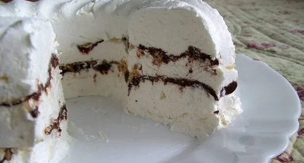 Ponovno staviti smjesu šlaga i vrhnja, te ponoviti postupak s keksima, lješnjacima i čokoladom. Staviti preostalu smjesu šlaga i vrhnja. Staviri preko noći da se dobro zamrzne.