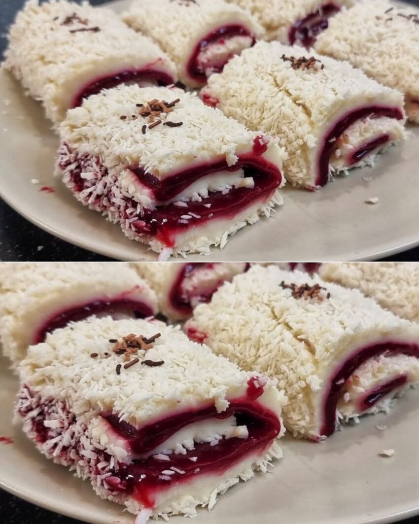 Ove rolice s umakom od višnje i kokosa izvrstan su desert bez pečenja koji spaja kremasto bogatstvo temeljca s okusom kokosa sa slatkim i pikantnim notama umaka od višanja. Baza napravljena od kokosa je i mekana i glatka, dok premaz od naribanog kokosa dodaje divnu teksturu.