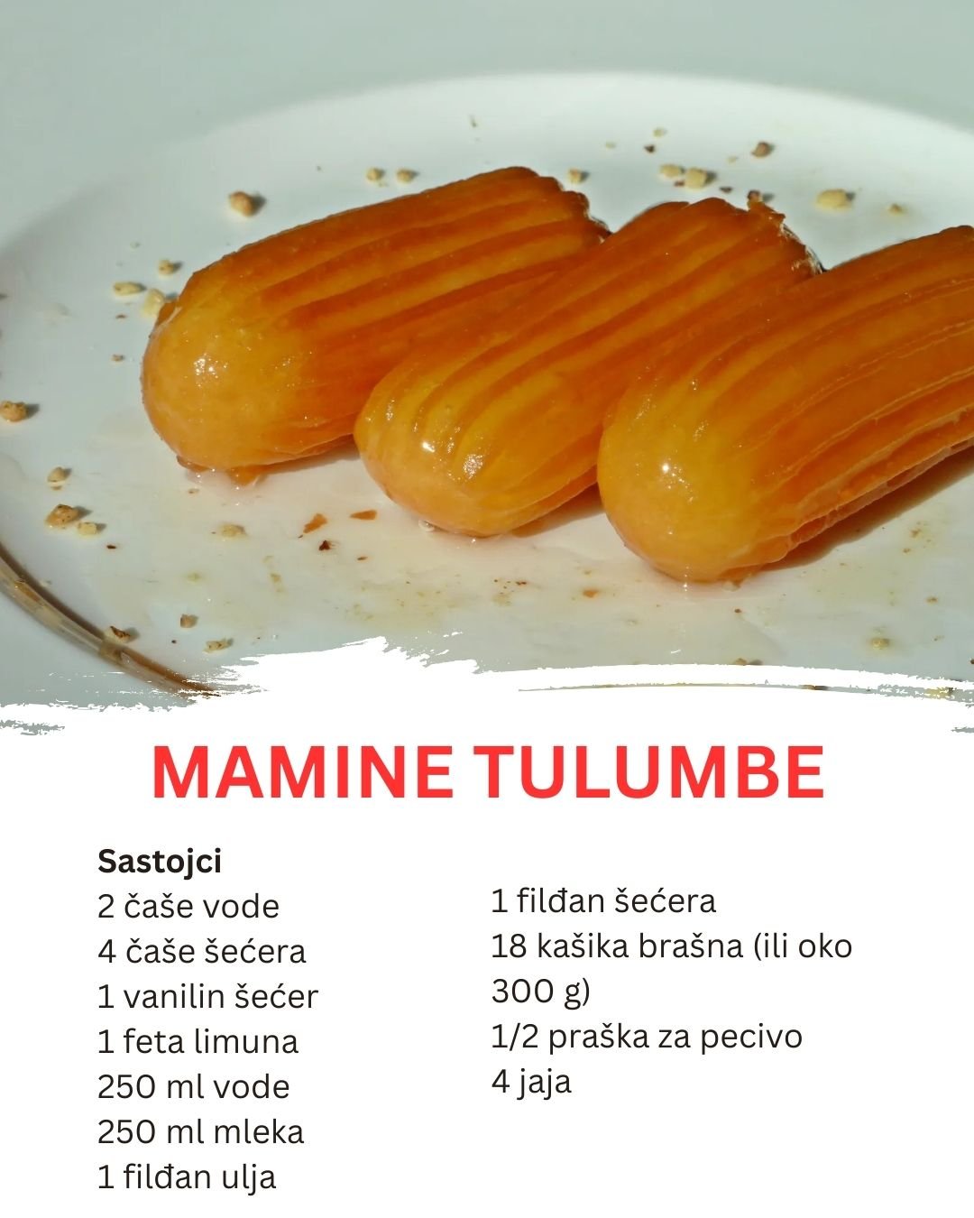 Kada se tulumba u potpunosti zarumeni sa svih strana, naročito u rebrima, znači da je gotova. Vadi se šupljikavom kašikom, ostavi da se ocijedi od ulja i odmah stavlja u ohlađeni sirup gde se ostavlja da se natopi dok se sledeća tura prži.